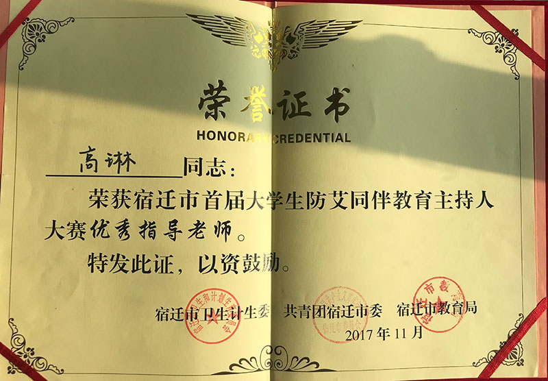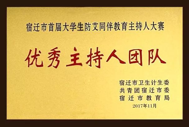 近日,由宿迁市卫生计生委、团市委、市教育局联合组织开展的宿迁市首届大学生防艾同伴教育主持人大赛在宿迁学院图书馆举行,我院防艾教育宣传团队积极组织参加大赛,通过大赛的精彩表现获得“优秀主持人团队”,校团委高琳荣获“优秀指导教师”。