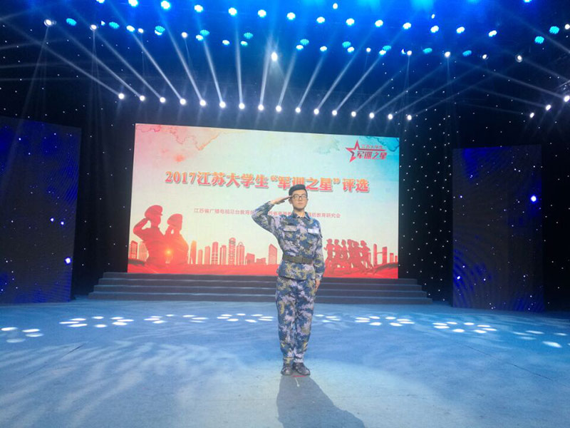 秋风正爽,沙场点兵。江苏省第二届大学生“军训之星”评选在江苏广播电视台举行。我校信息学院梁钰同学代表我校参赛。“军训之星”评选是由江苏省高教学会国防教育研究会、江苏省广播电视总台教育频道共同组织的。在11日的比赛中,我校梁钰同学在演讲环节、军事技能展示环节均表现优异,以总分第六一的优异成绩完成了第一阶段的比试。