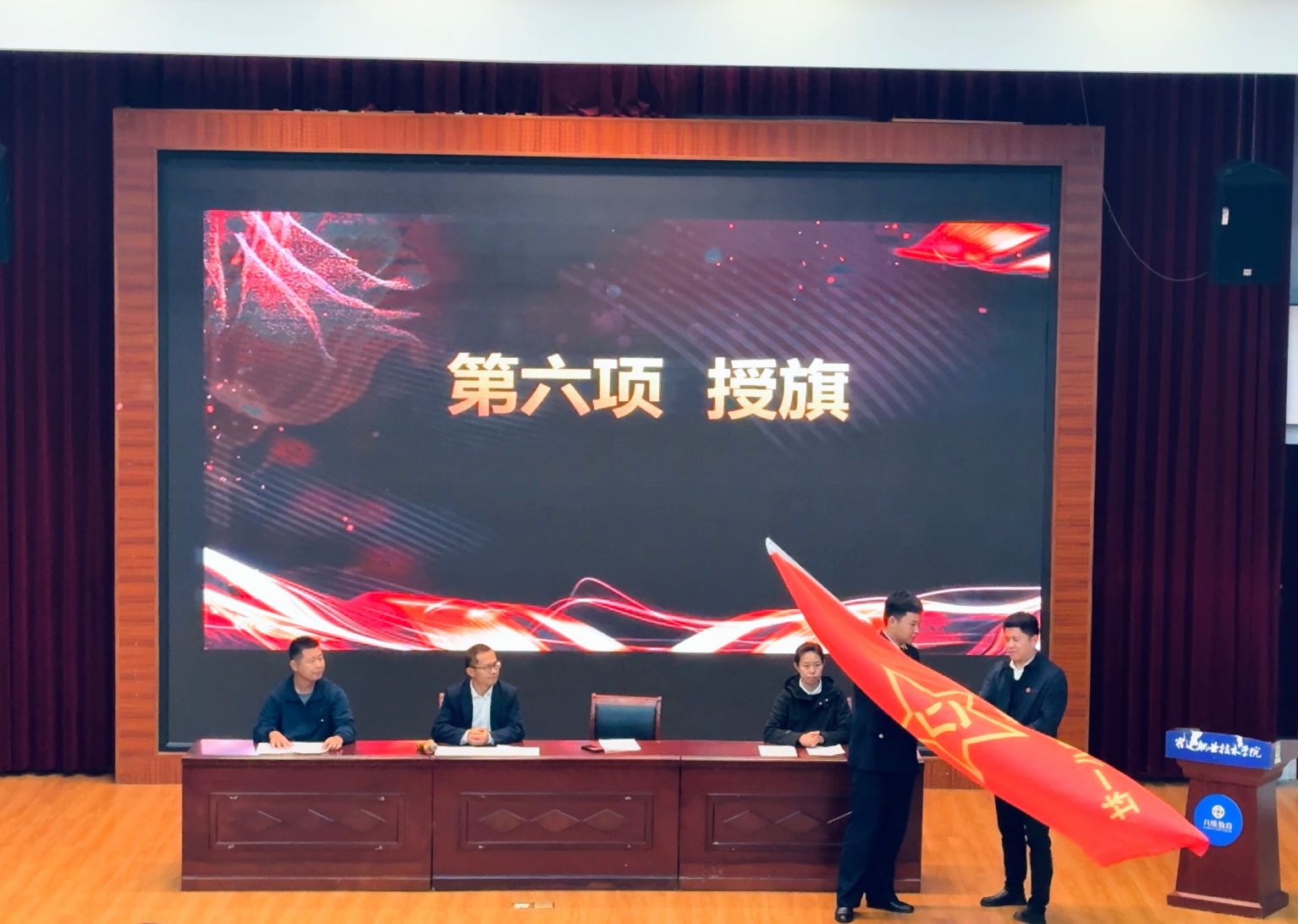 推荐赌博十大app信息设计学院及信息科技学院党支部书记、学生工作处高琳为“八一社”授旗。