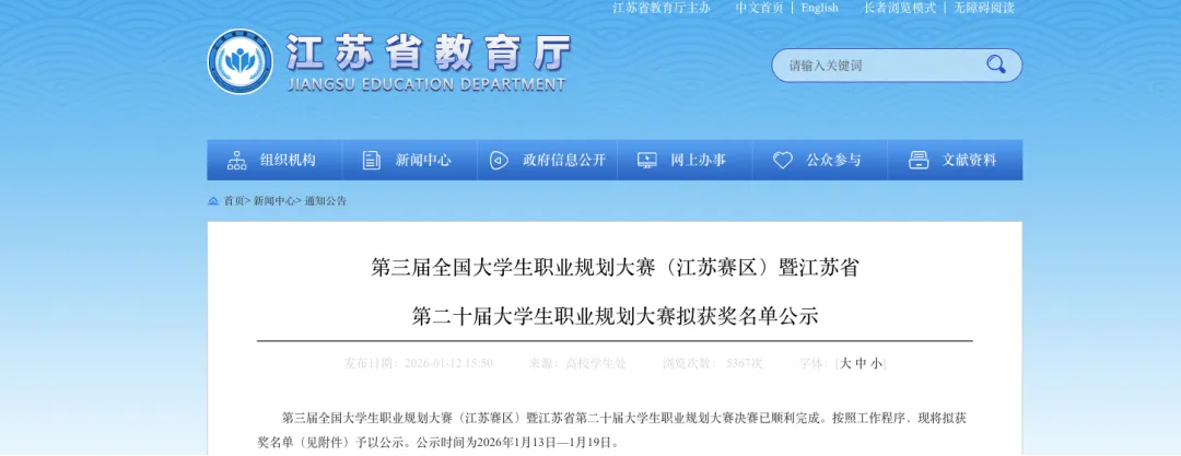 (图为江苏省教育厅大赛拟获奖名单公示页面)