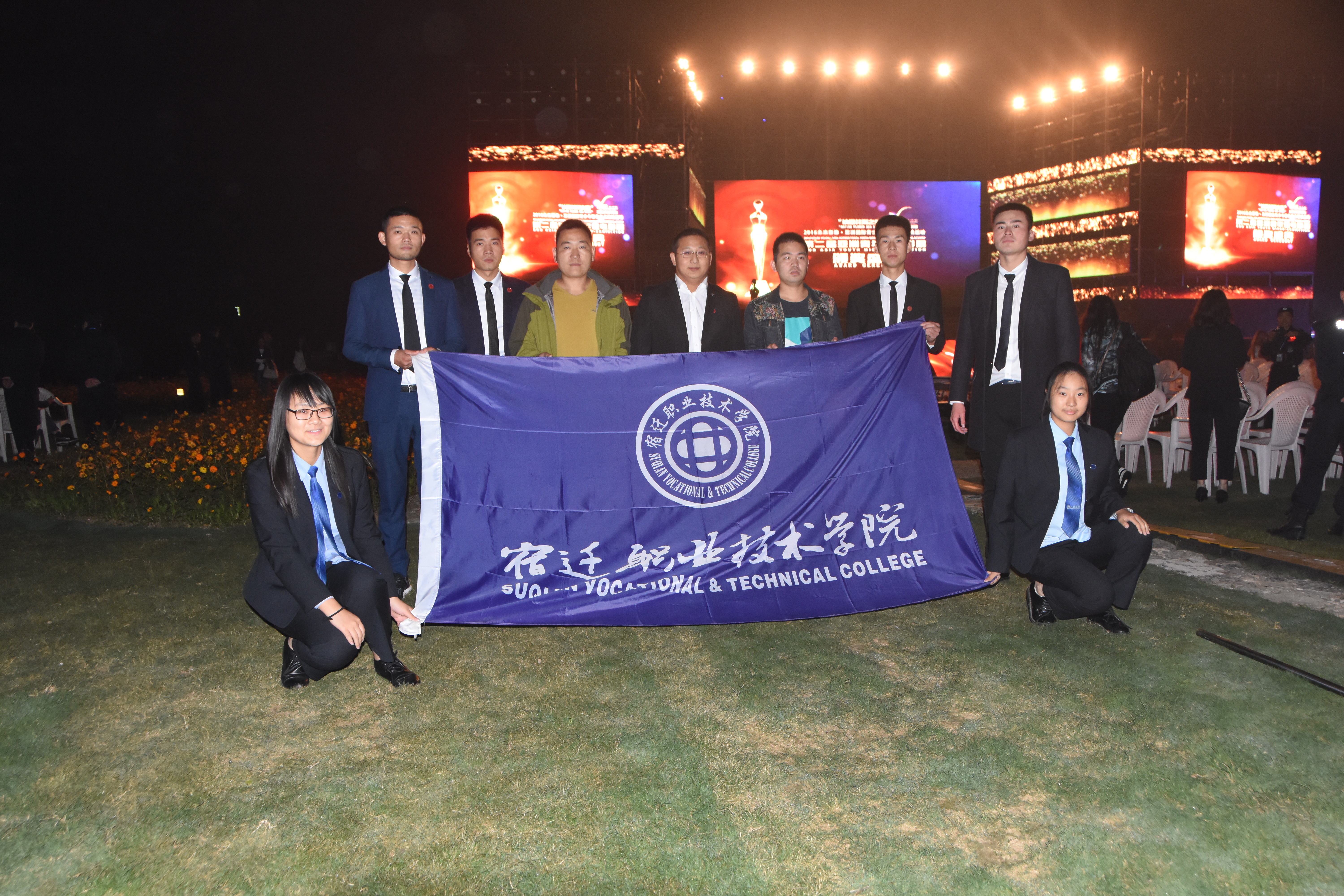 大牌云集,群星闪耀。10月13日晚,三台山森林公园衲田花海T台灯光璀璨,盛况空前,第二届亚洲青年微电影展、“美丽中国·青春宿迁”极拍48小时微电影竞赛“衲田花海之夜”颁奖盛典隆重举行。我院师生500余人参加了亚洲第二届青年微电影展颁奖盛典活动,此活动由学院团委书记高琳;公共基础系李桦兵科长;教官叶尚、袁浩、潘皇刚、顾伟文及中专部姜彬教官;王虎教官带队前往三台山森林公园衲田花海参加。