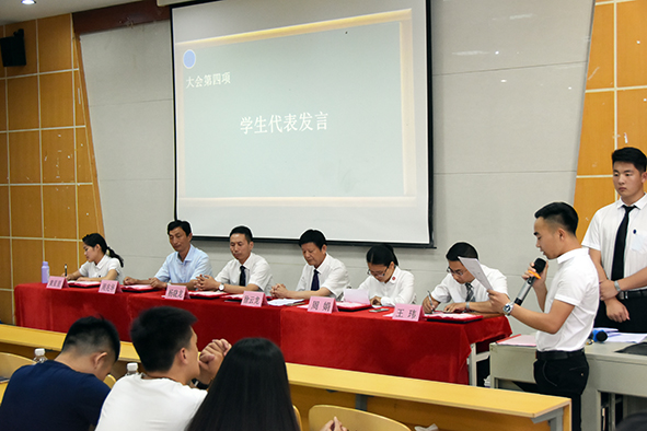 来自互联网金融系徐倩同学,她在发言中表示,今后向学长学习,在我校良好的教书育人的氛围下,认真踏实、勤勉刻苦、积极进取、努力钻研、勇于实践、敢于创新、学会做事、更学会做人,用青春和智慧续写大学生活的五彩篇章。