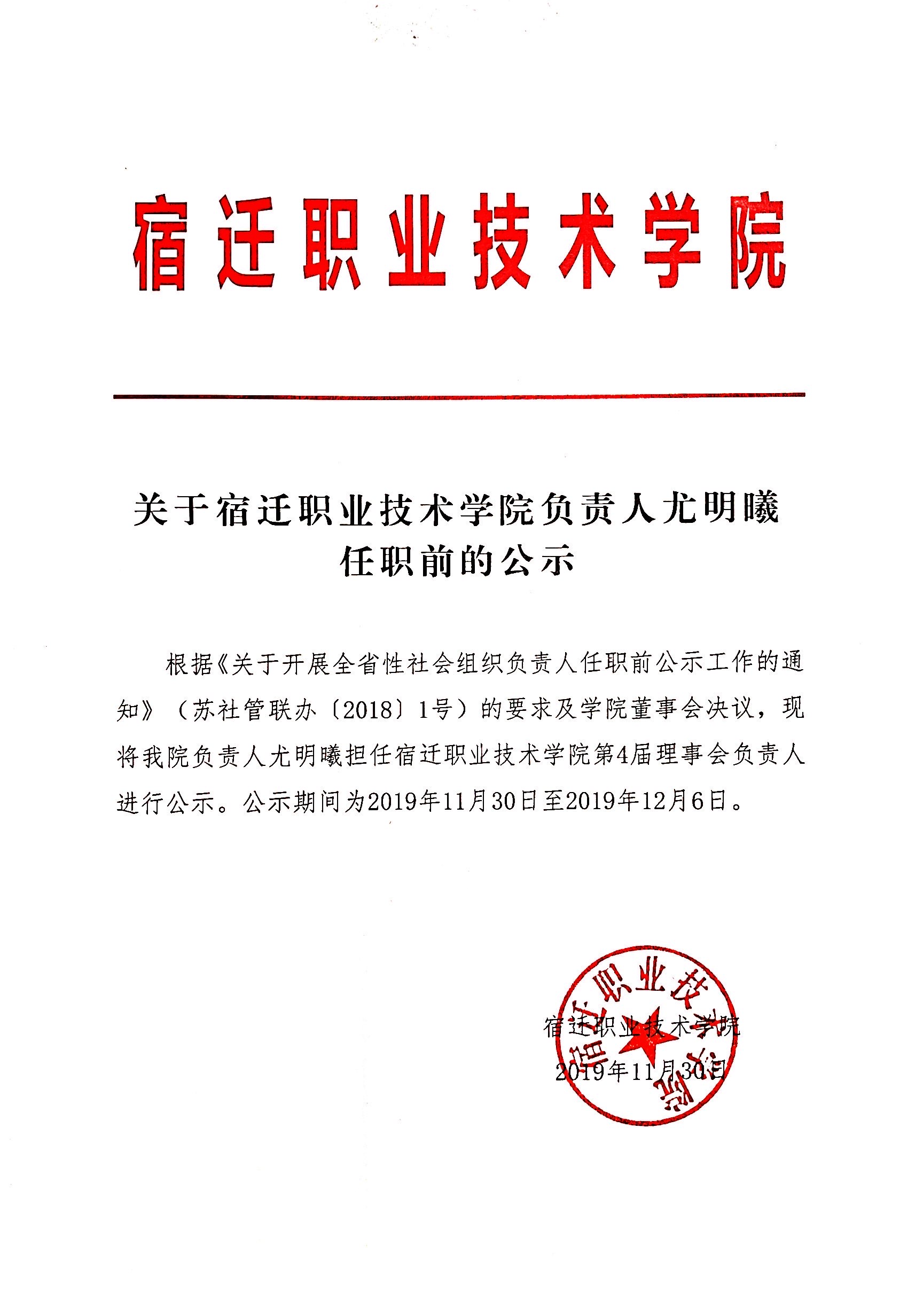 关于十大正规网赌软件app负责人尤明曦任职前的公示 - 通知公告 - 十大正规网赌软件app