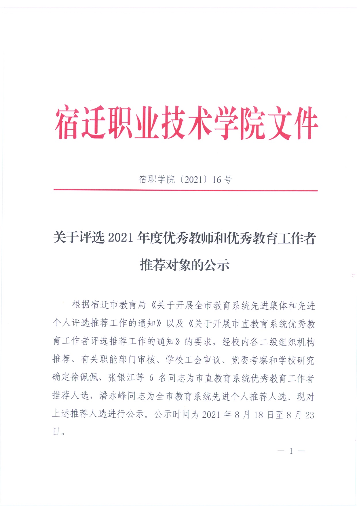 关于评选2021年度优秀教师和优秀教育工作者推荐对象的公示 - 通知公告 - 推荐赌博十大app
