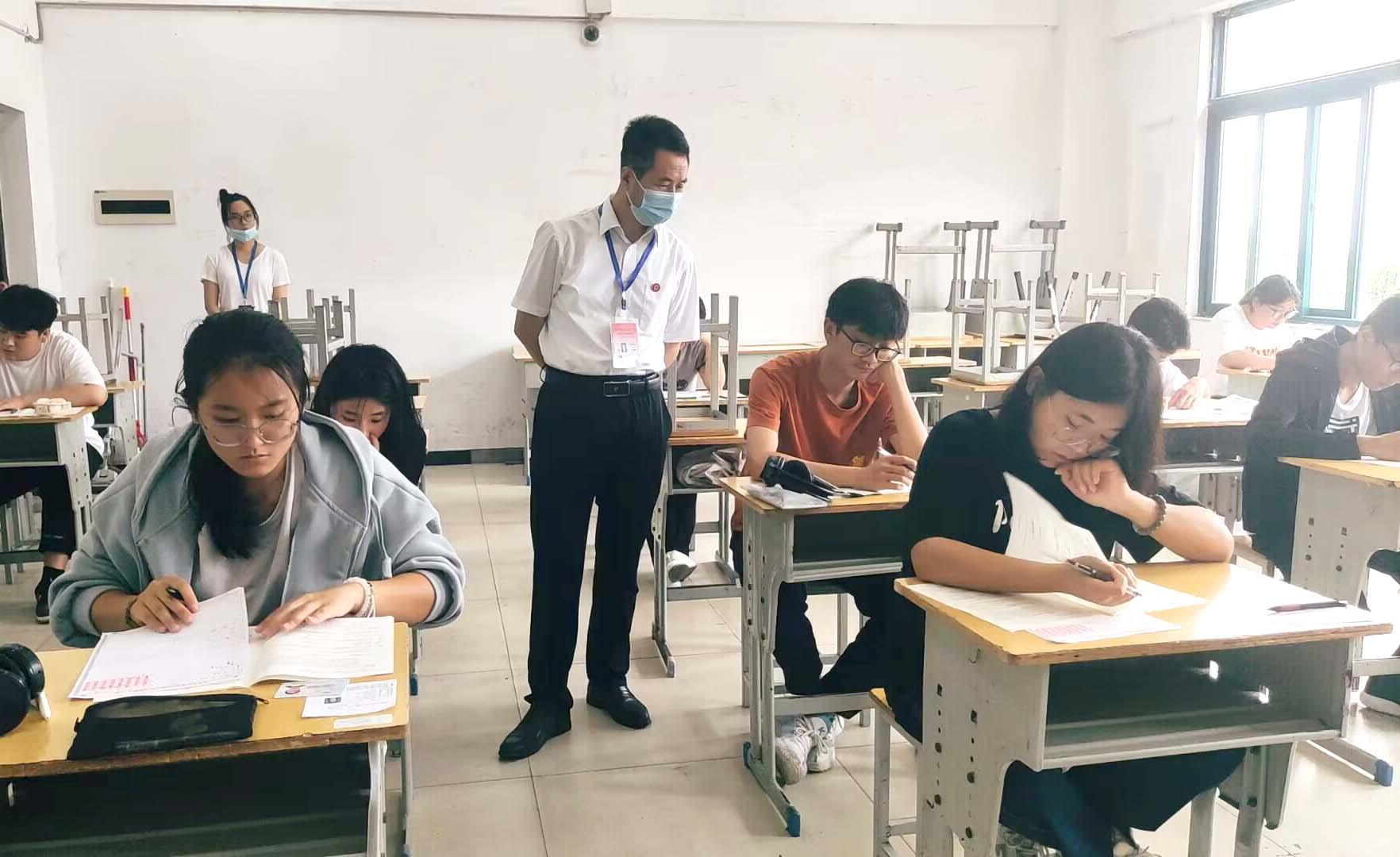 2023年6月18日,英语应用能力等级考试在十大正规网赌软件app顺利开考。考试当天,各楼层的考务人员认真对考场进行巡查,我院领导杨晓龙校长、考务处负责人贾寅凤处长也深入到各个考场仔细查看每个考场的考试秩序以及学生答题情况等。