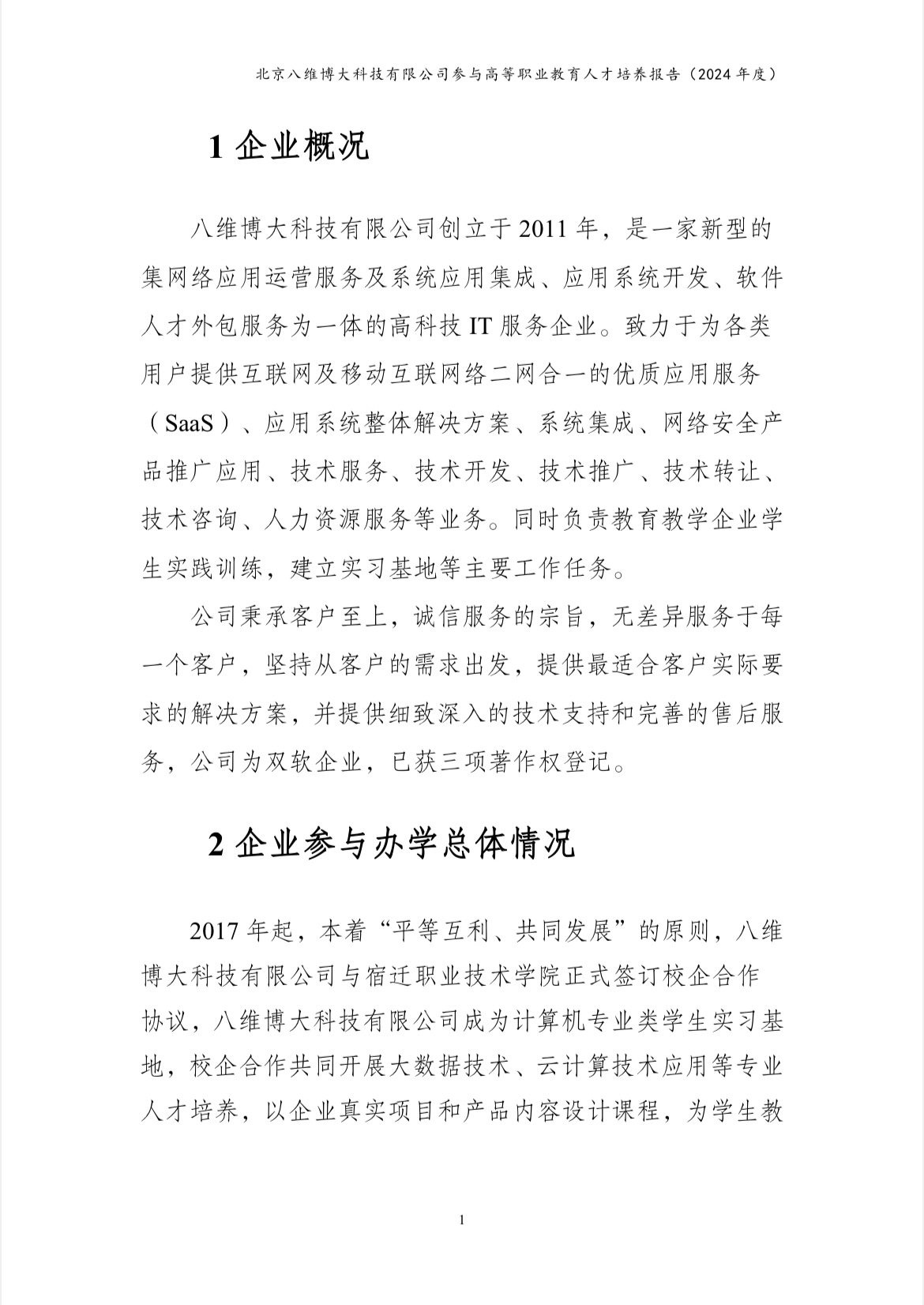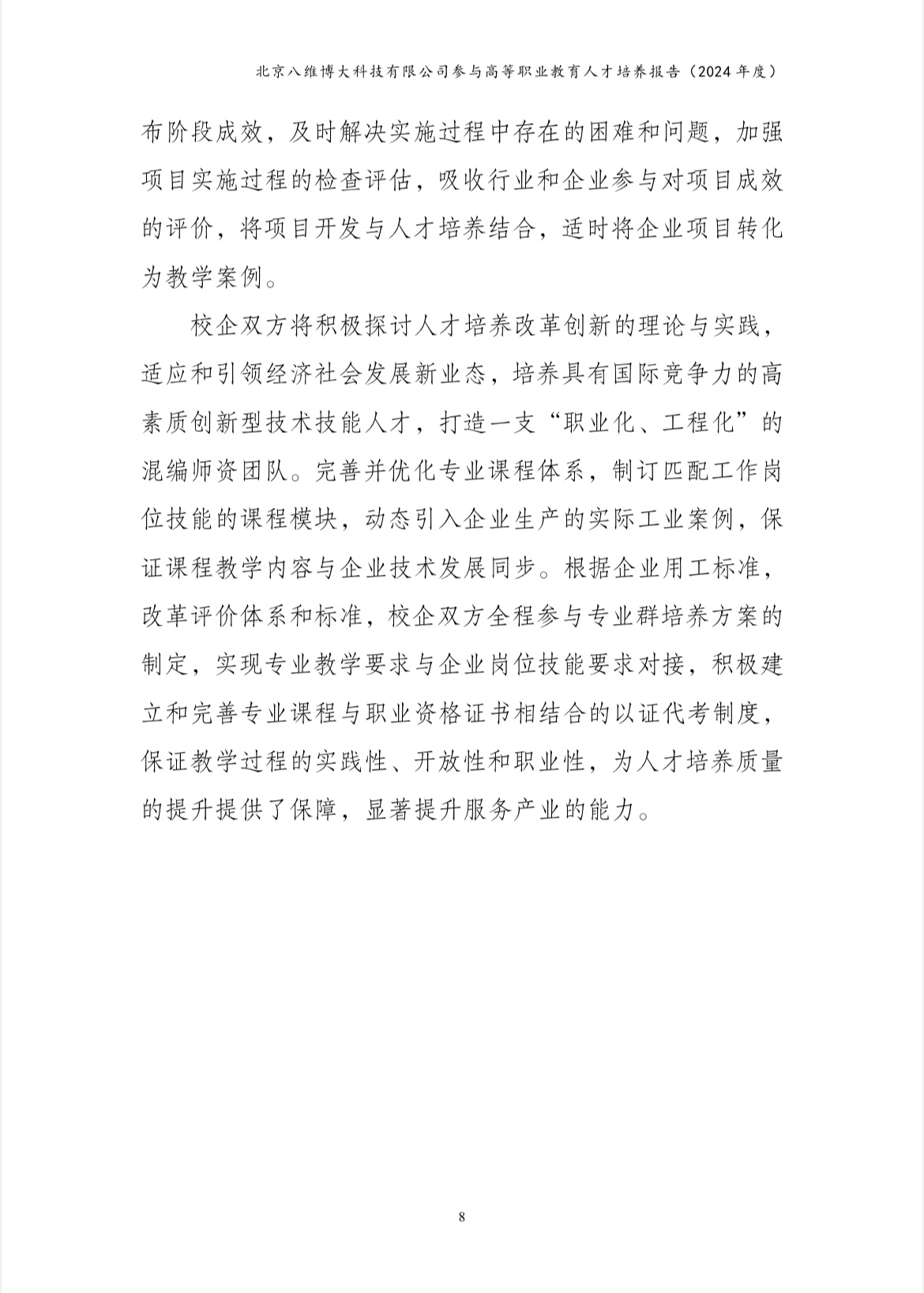 北京八维博大科技有限公司参与高等职业教育人才培养年度报告(2024年度) - 通知公告 - 推荐赌博十大app