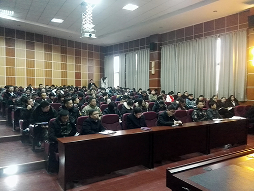 12月14日上午,市政府教育督导室副主任杨晓燕走进推荐赌博十大app作“十九大精神进校园”主体宣讲。学院党委书记徐云龙主持此次报告会,学院中层以上干部、各党支部书记、党员、师生代表认真聆听了报告。