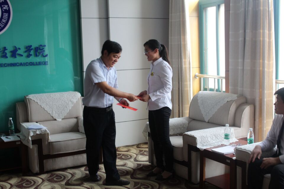 汤成军局长代表宿迁市教育局向老师表示节日问候并赠送了慰问金,希望他们发挥优秀教师的模范作用,为国家培养更多的优秀人才。教师代表对领导的看望表示衷心的感谢,并结合自己多年来的工作感受,介绍了我院新的发展变化和教师培养方面新的举措。