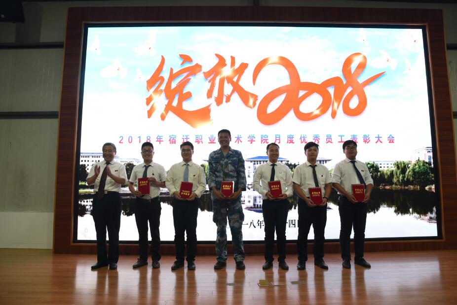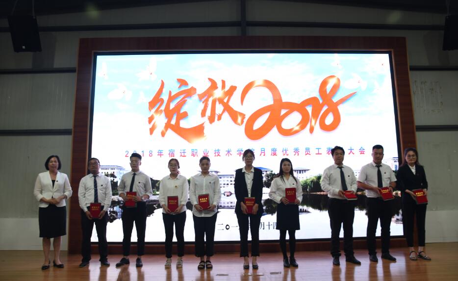 大会对在2018年8月度为学校教学、学管工作做出突出贡献的6名优秀新师、18名优秀讲师、12名优秀阶段主任、6名优秀系主任、6名优秀“三零一百”辅导员、4名完全自主管理优秀导师、5名应知应会成绩优异辅导员、7名电话沟通优秀辅导员予以表彰,授予徐建等10名员工“特别贡献奖”,授予刘茜等2名老师“文化大使”荣誉称号,授予信息设计学院英文系等4个系部“升班率第一系部”荣誉称号,授予女子学院“升班率第一学院”荣誉称号,授予电子商务学院“出勤率第一学院”和“最佳团队奖”。学院院长杨晓龙,副院长王刚、周兆华、陈慧清、任尔平等校领导为获得表彰的教职工和团队颁奖。