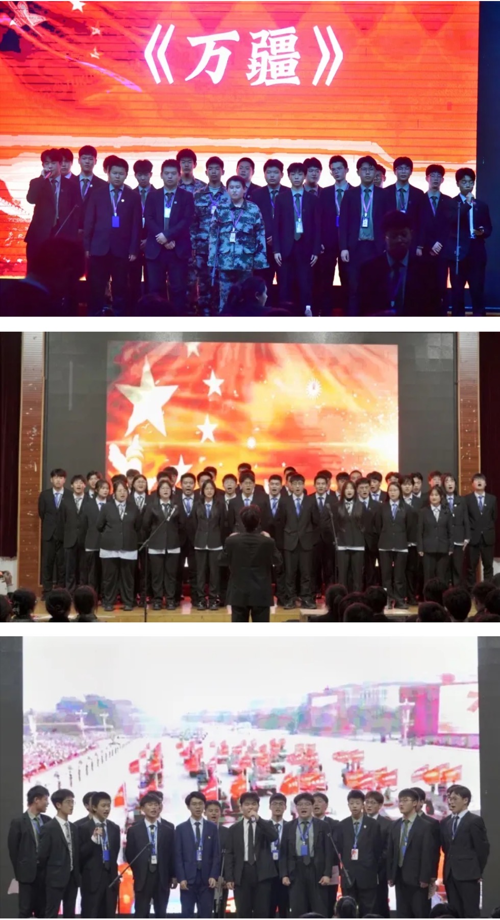 活动现场,各文化演讲团和各班级凭借着投入的演唱以及慷慨激昂的朗诵,向大家展现了他们的艺术才能与蓬勃朝气,生动形象地诠释顽强拼搏、超越自我的精神。从《歌唱祖国》《强军战歌》的激昂磅礴,到《万疆》《如愿》的动人温婉,再到《数风流人物》的豪迈、《龙的传人》的自信,同学们在旋律中回顾历史,感受时代的发展变化。