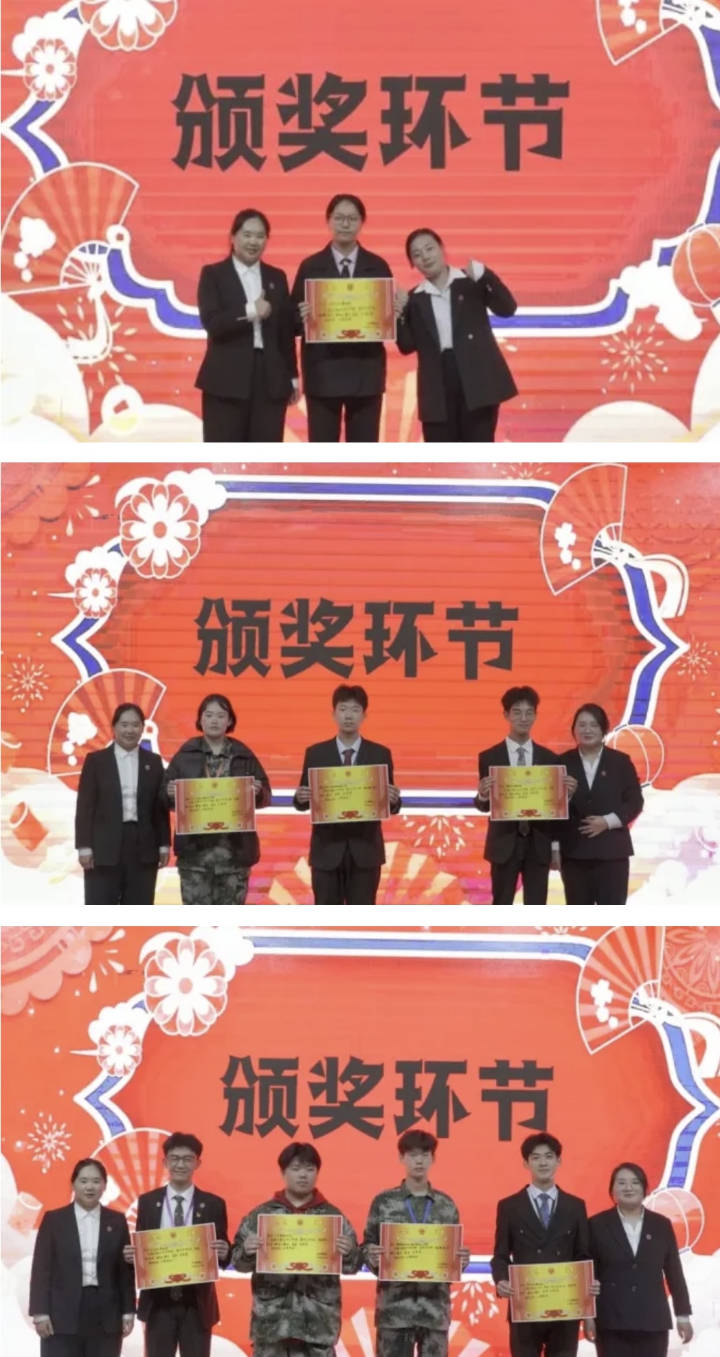 经过紧张而激烈的角逐,最终评选出了各组优胜者。女子文化演讲团以出色的表现荣获一等奖,3个班级及团队荣获二等奖,4个班级及团队获三等奖。这份荣誉不仅是对同学们辛勤付出的肯定,更是对他们爱国情怀、团队协作精神与艺术风采的赞誉。