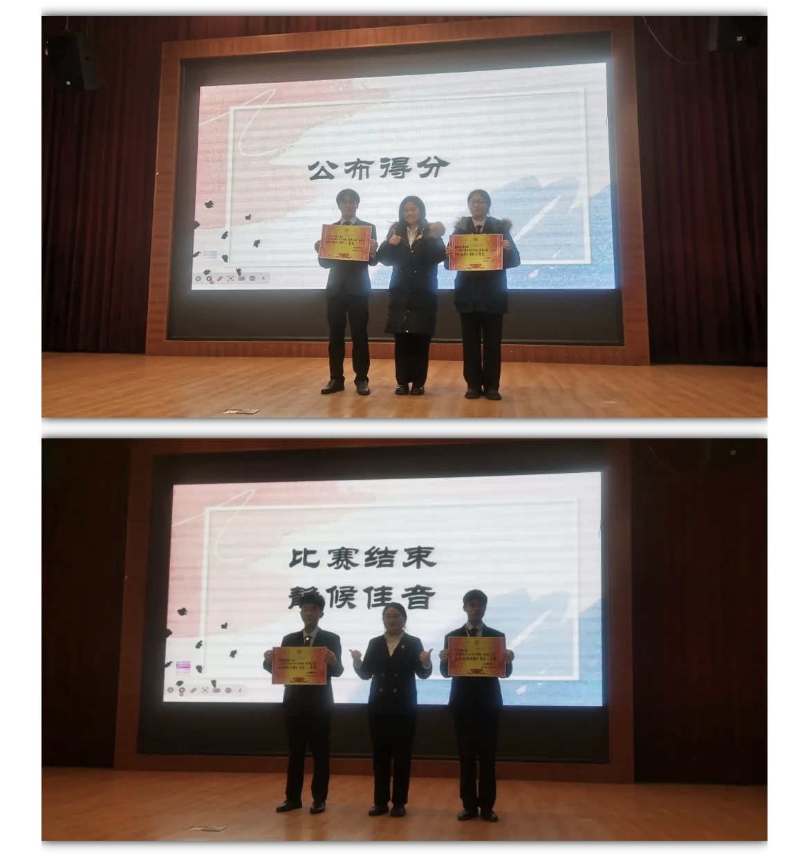 经过评委们紧张而严谨的打分和评定,最终的获奖名单在全场观众的期待中揭晓。来自女子学院的作品《当你老了》凭借其深刻的主题、细腻的情感表达和精湛的制作技艺,在众多优秀作品中脱颖而出,荣获一等奖。信息学院的《孝在当下》《认识自我,理解父母》以独特的视角和深刻的内涵,荣获二等奖。女子学院的《爱的陪伴》以及基础学院的《我想说》也凭借其真挚的情感和精彩的创意,荣获三等奖。当获奖团队代表们手捧奖杯和证书,站在舞台上的那一刻,全场掌声雷动。这掌声不仅是对他们辛勤付出和优秀作品的肯定,更是对所有参赛同学感恩之心的赞美和鼓励。