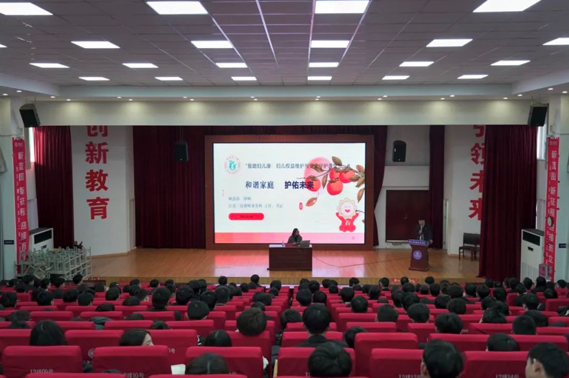 春风拂面催人进,巾帼花开别样红。在第115个“三八”国际妇女节来临之际, 3月6日下午,由市妇联、市教育局联合主办的“纪念‘三八’国际妇女节115周年——普法宣传进高校”活动在学校一号报告厅隆重举行。江苏三佳律师事务所党支部书记、律所主任耿莎莎律师以“和谐家庭,护佑未来”为主题,为2024级部分学生带来了一场精彩的法律知识普及讲座。活动由党委学工部(处)长高琳主持。